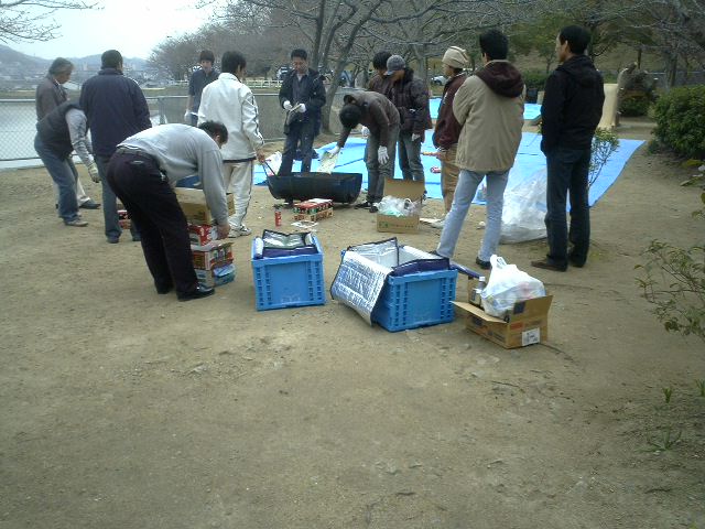 花見の場所取りが3グループいた。