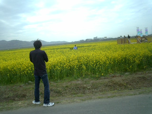 今日も菜の花を見に見物人がいくらか、