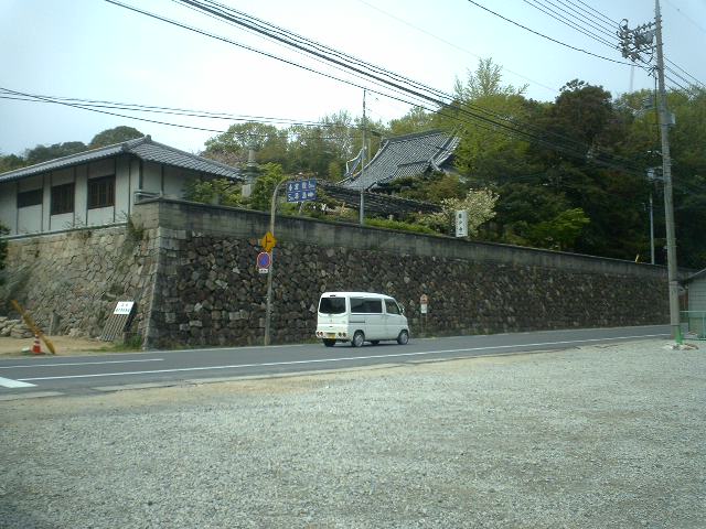 玉野に行く国道に沿って古くかつ立派な石垣のうえにある。