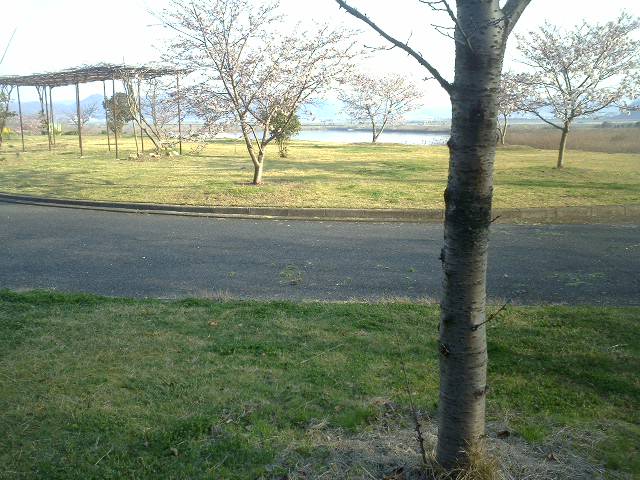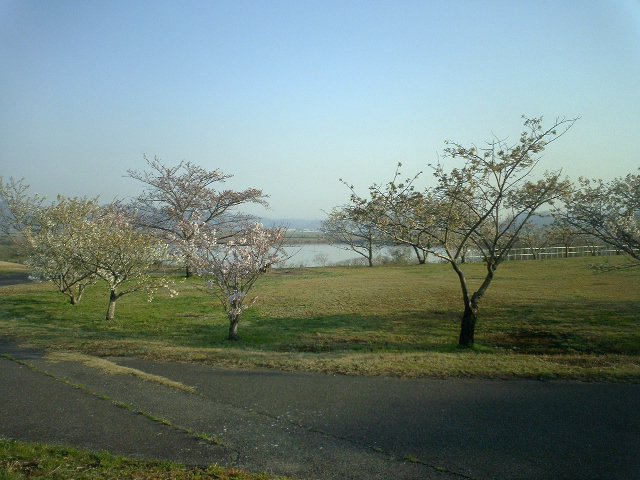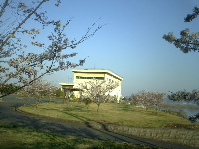 こちら笠岡湾堤防側から見るポンプ場の桜。