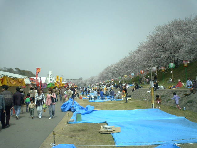 河川敷の中央あたりにテント売店があり、このあたりがいちばん特等席になるのかな。