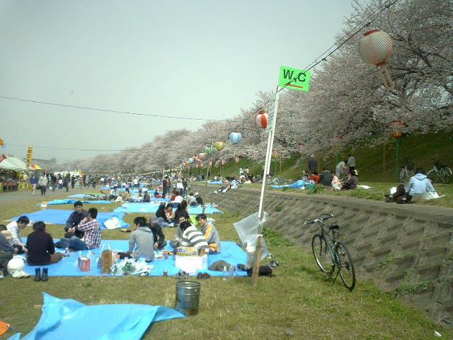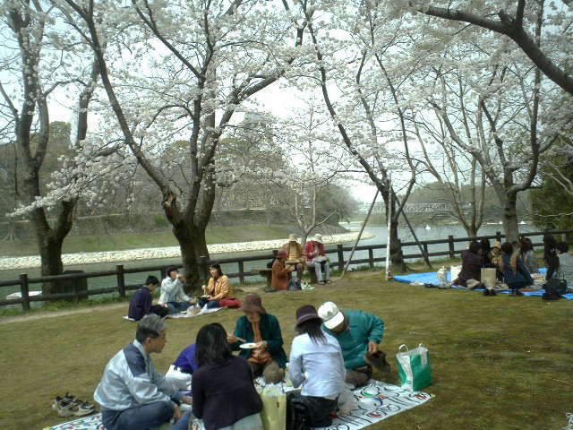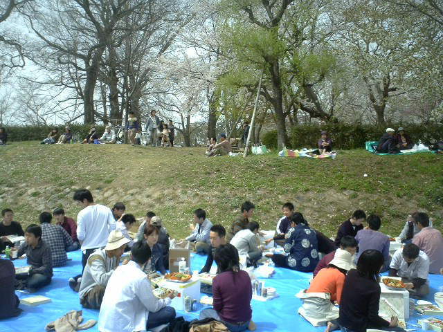 こうやって飲んだり食べたりのグループは少数派。場所取りだけがほとんど。