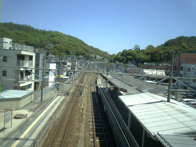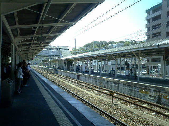 | ↓、西方向。今日はGW5連休の初日・・えいちゃんは9連休の中日・・・で、電車を待つ人が割りといる。 | |