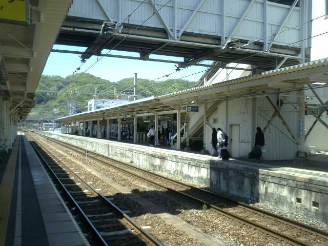 笠岡駅の2006年5月3日。 午前9:54の山陽線上りのプラットホーム。