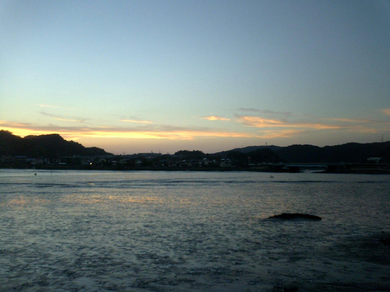 西の空は遠く沼隈半島が赤く染まっている。 |