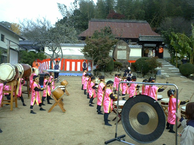 生家の前で中学生の演奏や小学生の太鼓の演奏があり、