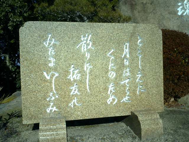 昭和33年建立、書は当時(昭和10年代)の岡山県知事。
