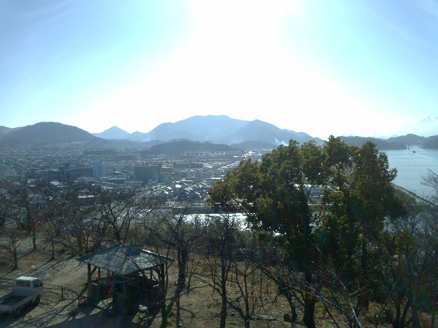 (城山の山頂から見る大島)