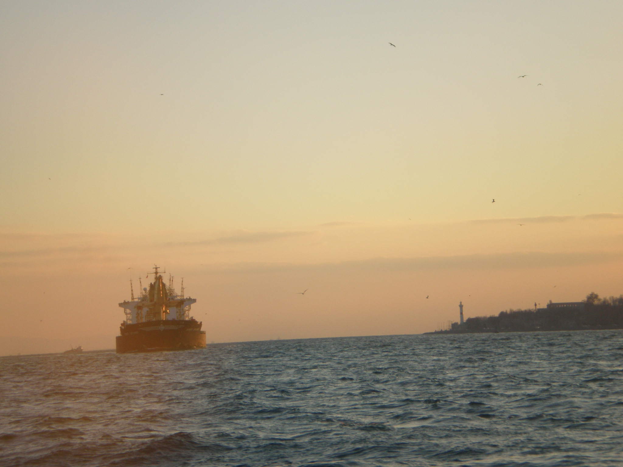 トプカピとボスポラス。 クルーズの最終章、 そして今回のツアーの終わりでもある。 金角湾に戻るころ。 正面、シュレイマニエ・モスク。 夕日とモスクと海が、イスタンブールそのもの。