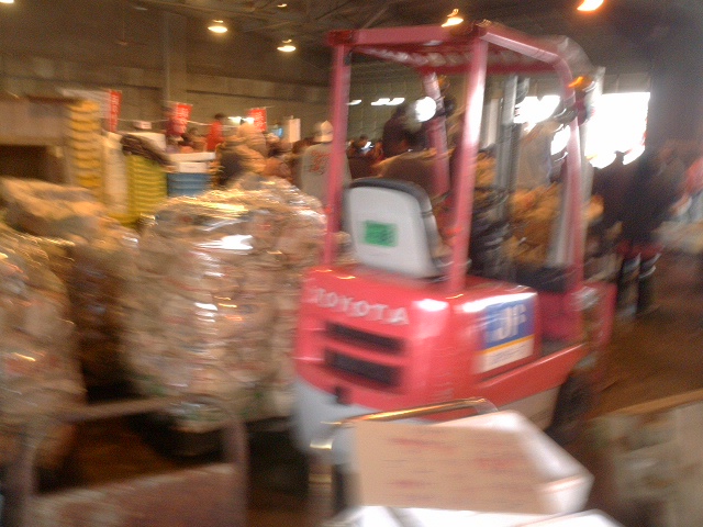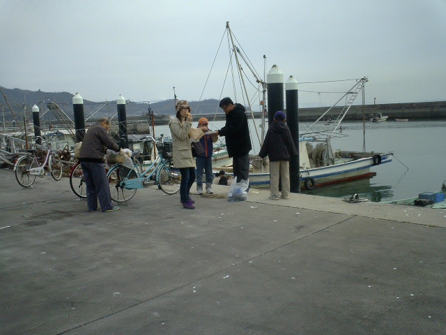 殻付きの牡蠣は肥料袋に似たのに入れて2000円、それに小袋では1000円。