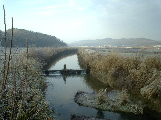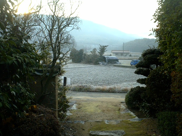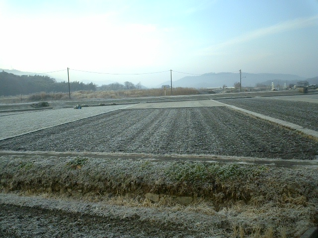 そこを走り、長福寺側に降りるように走れば山口の田んぼは霜でまっ白。