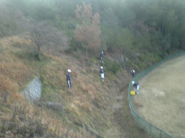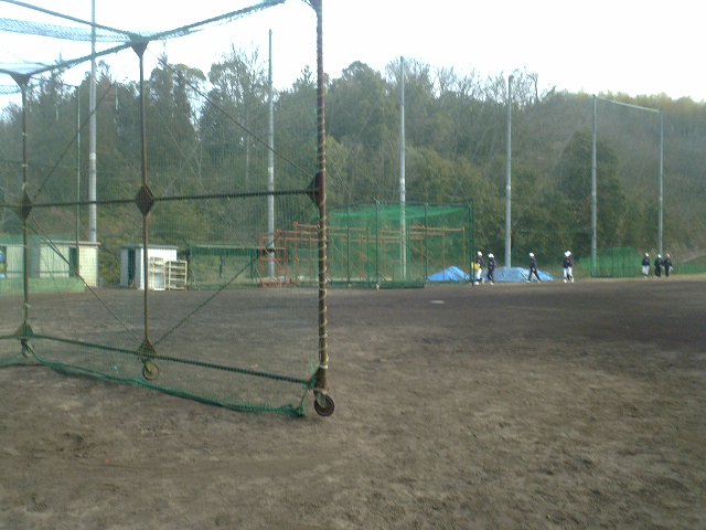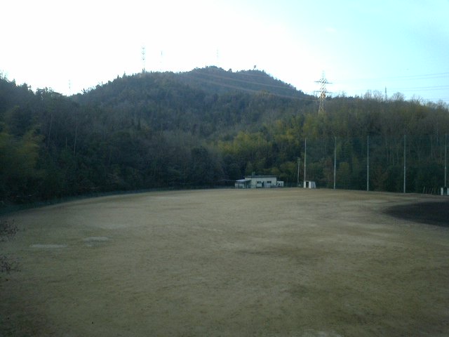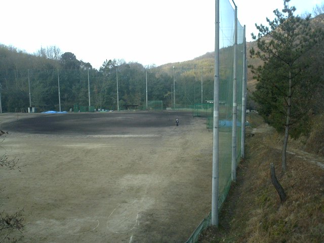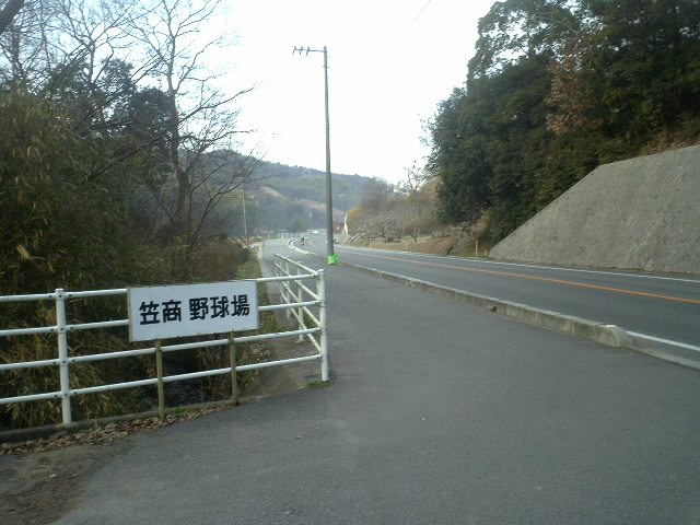 その道沿いに笠岡商業高校の野球部グランドがある。
