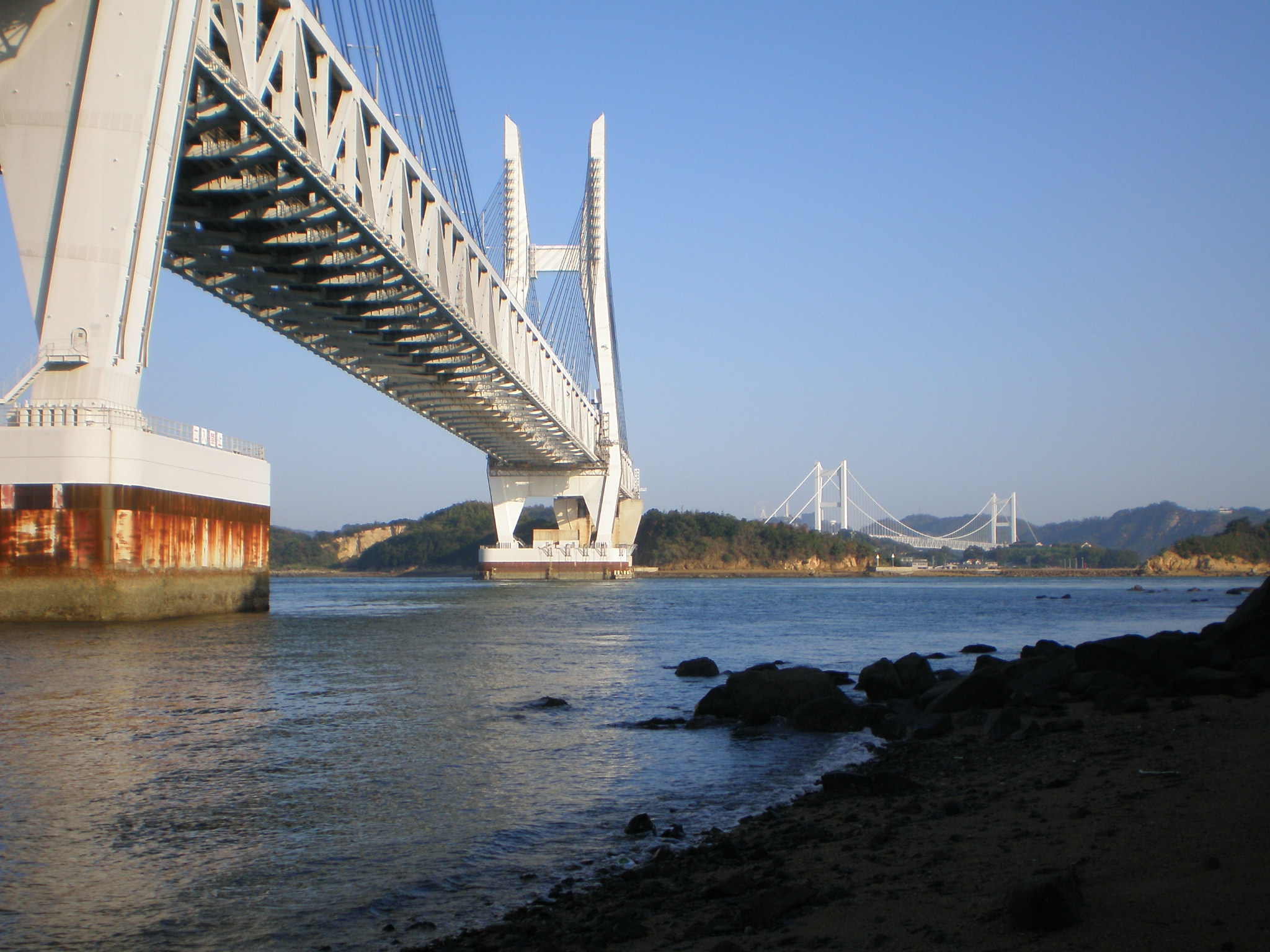 北に向かっては「櫃石島橋」、その向こうには「下津井橋」が見えている。