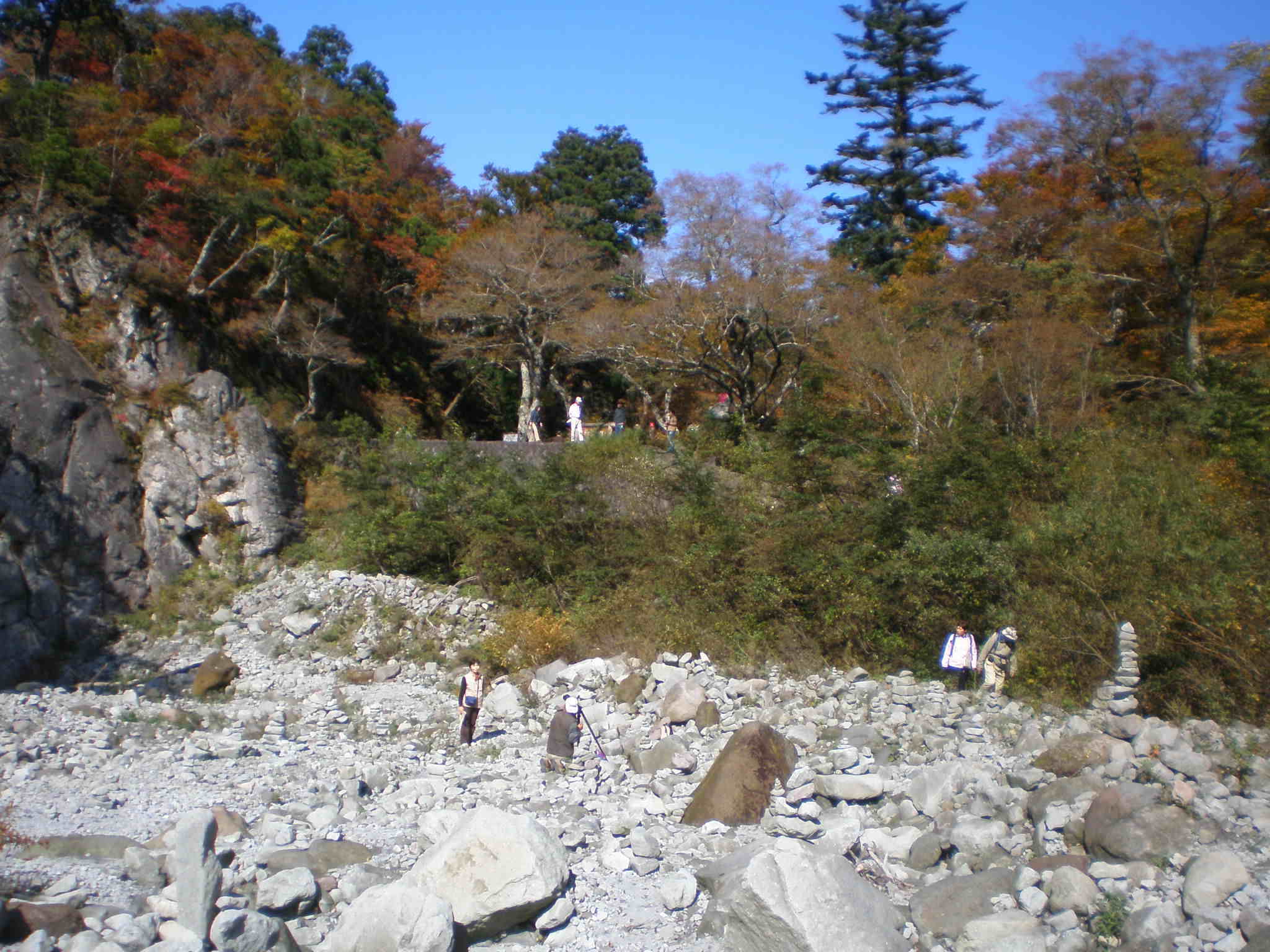 河原には積み石で五輪ノ塔がいくつかあった。