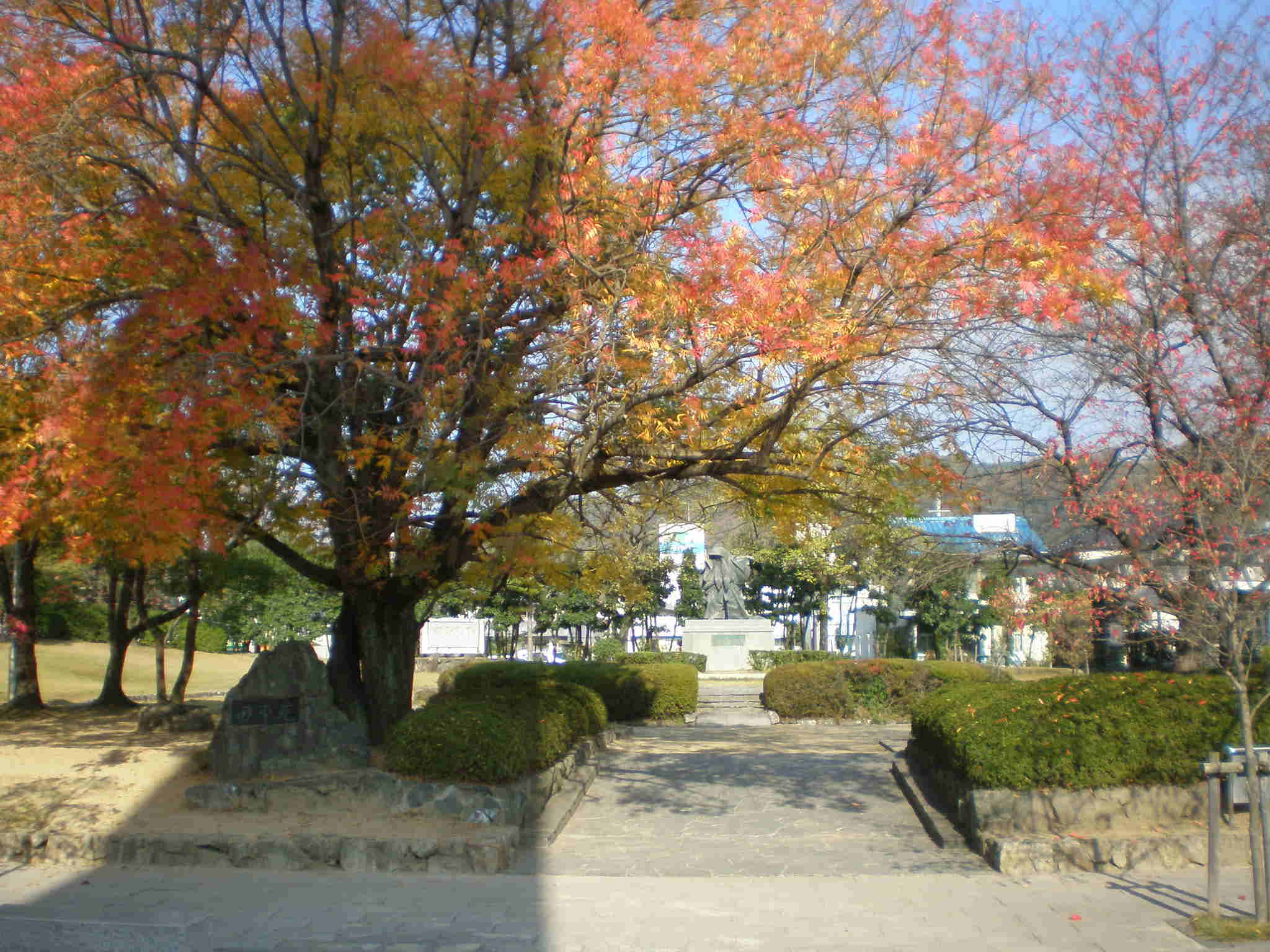 図書館に入るまえに井原の紅葉を楽しもう。街中を走ってみよう。