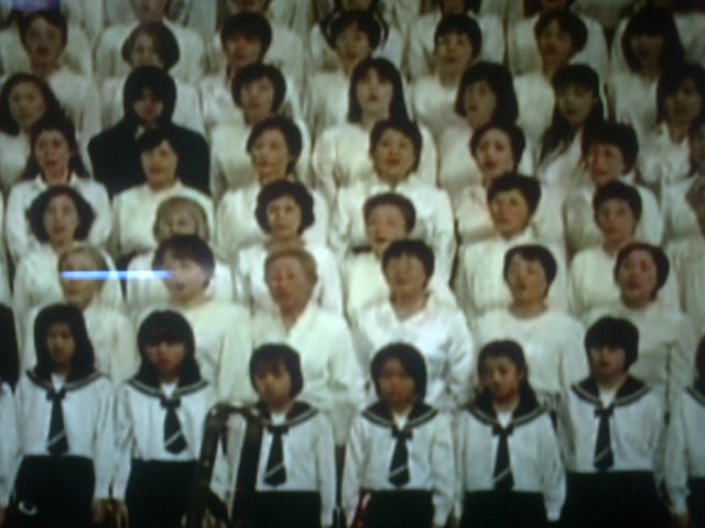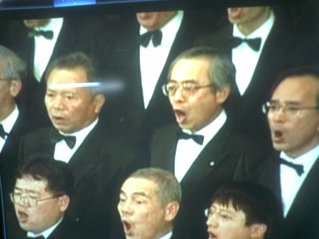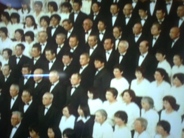 合唱の人は真ん中に男性、左右が女性。その数、およそ250人くらい。