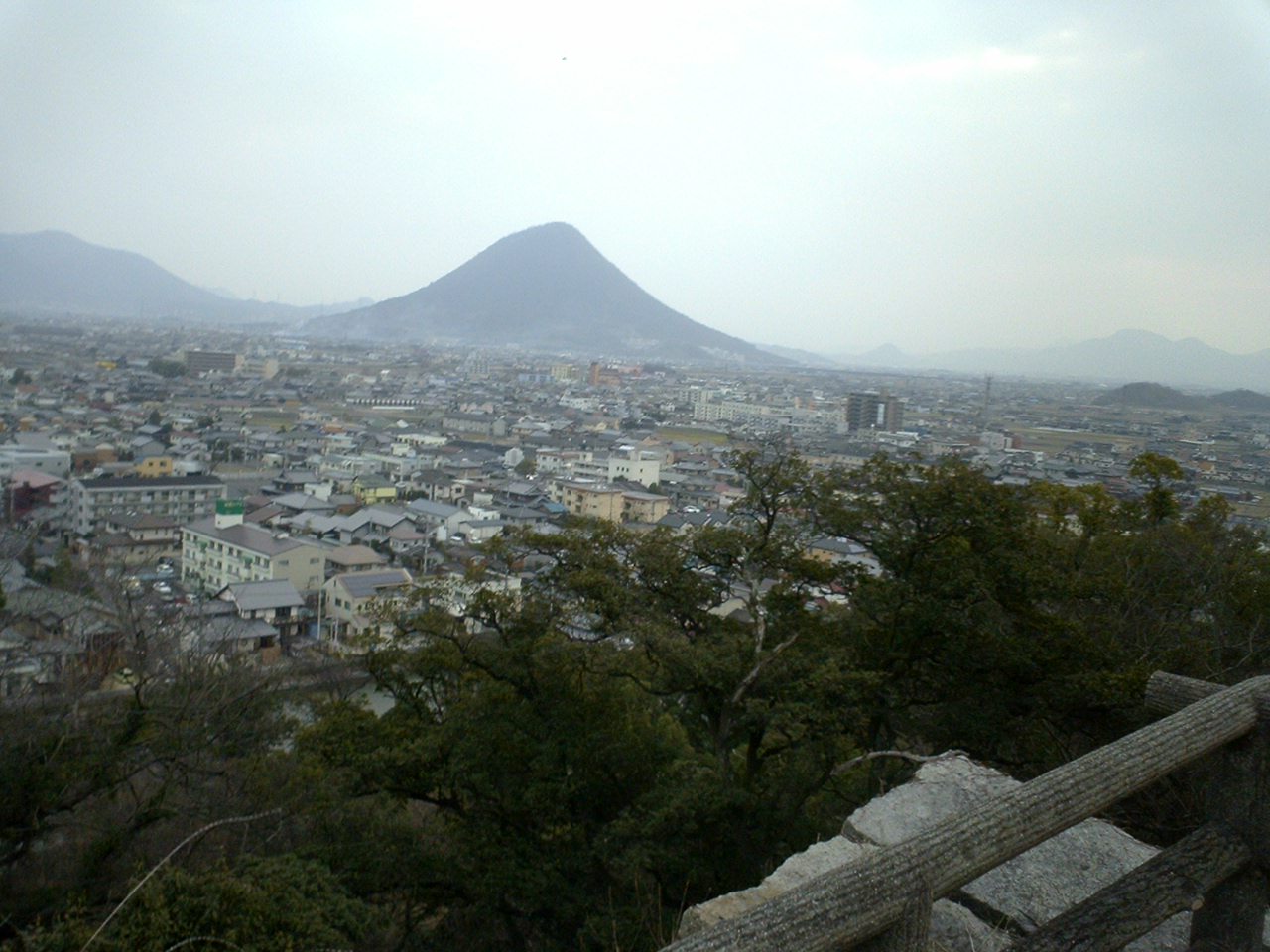 天守閣の場所からみる讃岐富士・飯尾山。