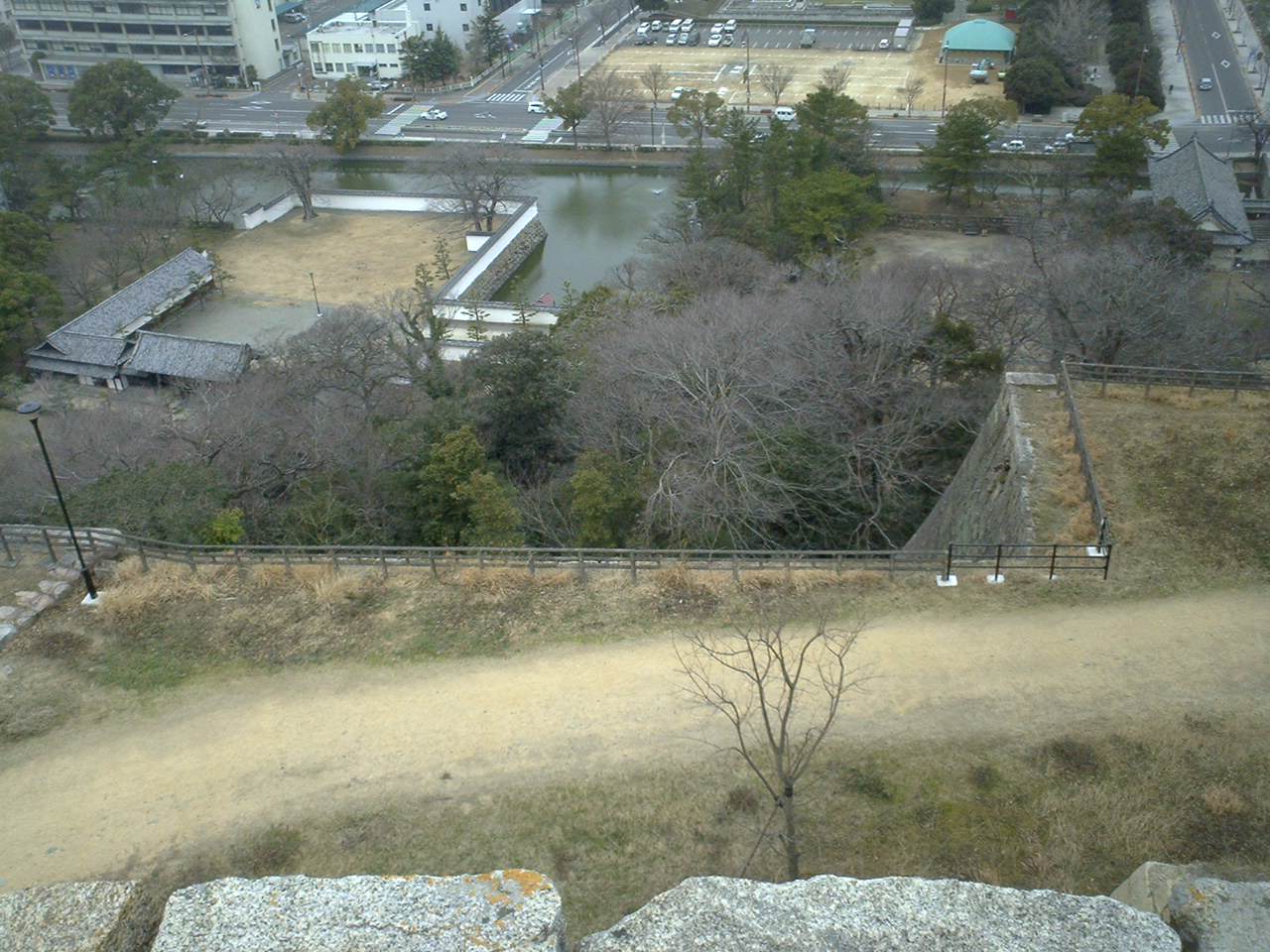 天守閣ふきんから見るお堀。