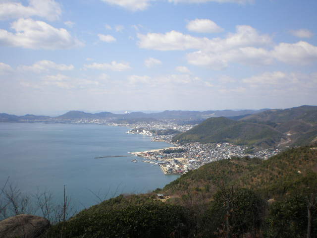瀬戸大橋と、いちばん左に讃岐富士の飯尾山。