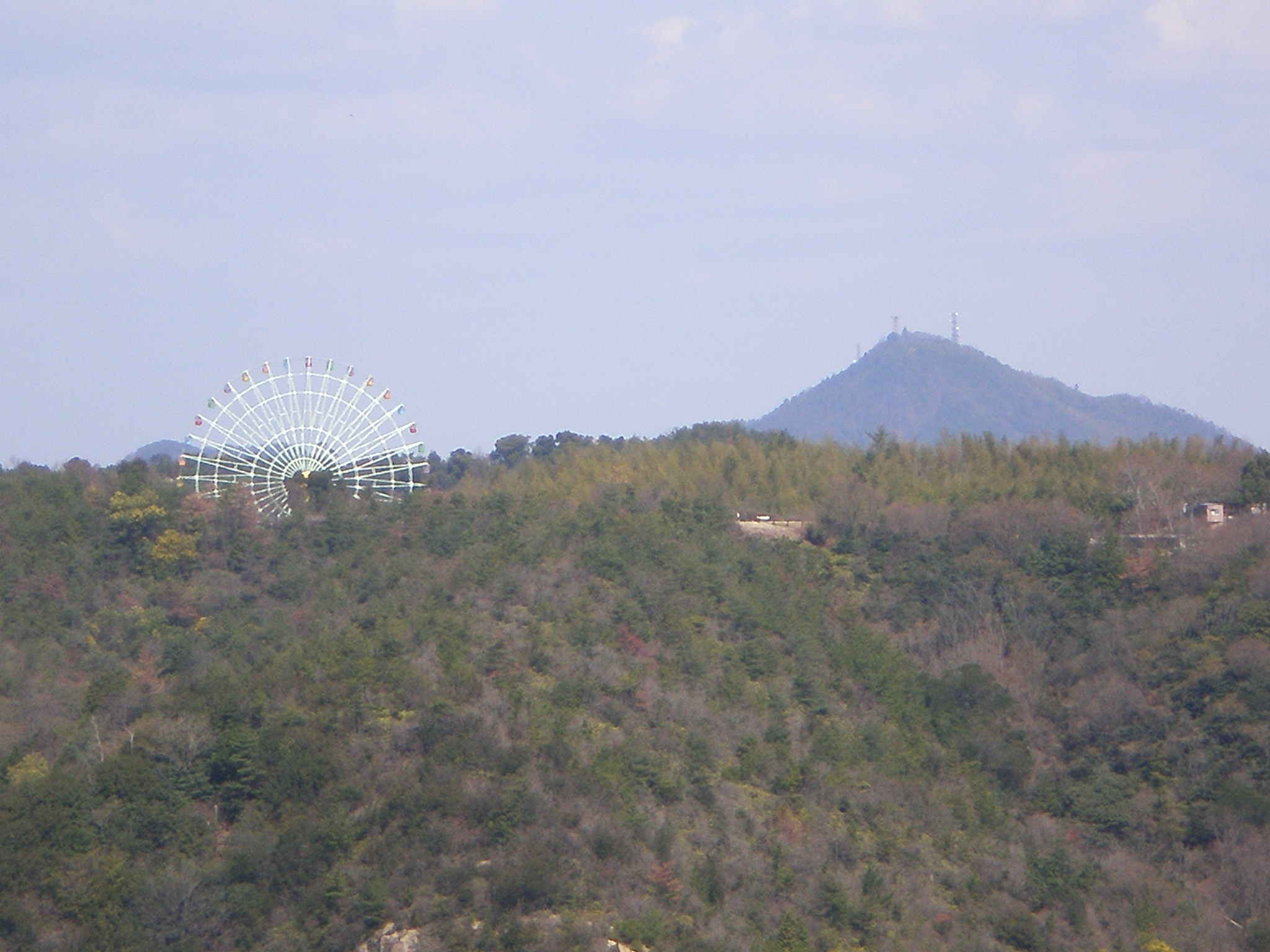 王子が岳おもちゃ王国の大観覧車の向こうに、さっき登った常山とTV塔が見える。