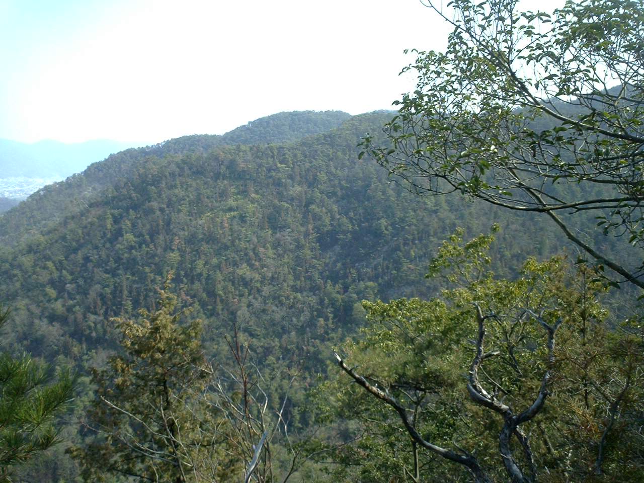 (矢掛側の阿部山の尾根) 矢掛をみながら、 北川をみながら、 尾根の山をみながら、 下山する。