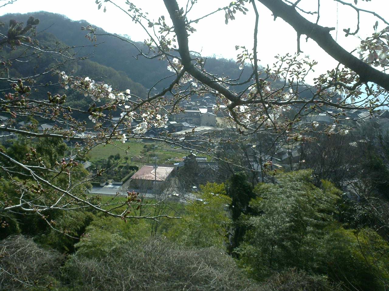 日光寺から神外小や神外中を見る。 学校を向く桜は咲いていた。