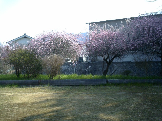 春のような日差しの日。 ふだんは近所の人が、 ここでゲートボールをする場所。