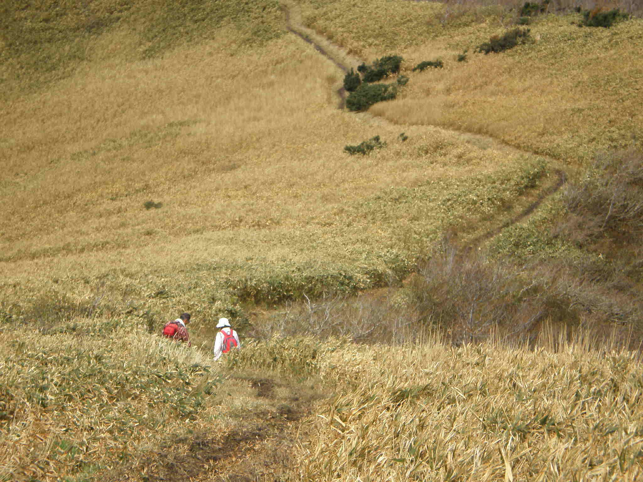 中蒜山への道は、ほぼ笹の道で視界は山も海(日本海)もよい道だった。