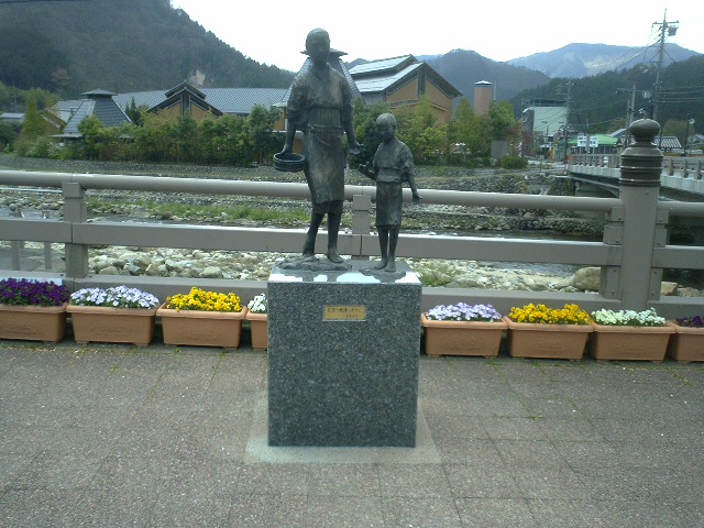 その足踏み洗濯の像があり橋がある、「奥津橋」。