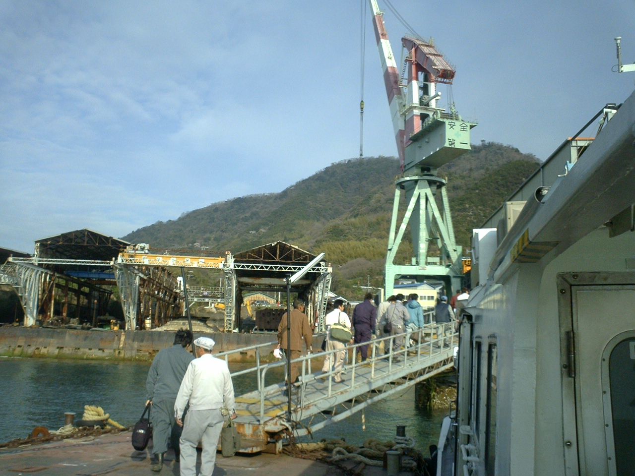 造船所にいく労働者と同じ時間帯だな、