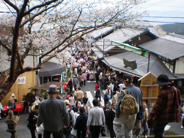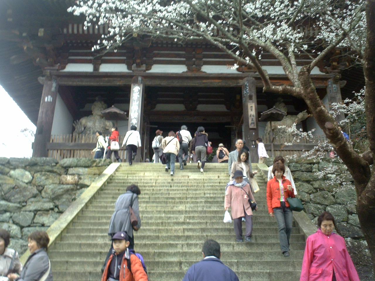 その仁王門の石段から下を見れば人も桜もいっぱい。