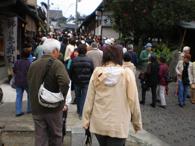 観光バスの駐車場はかつて見たこともない超過密、ピッタシ・ビッシリにその数100台くらいか。