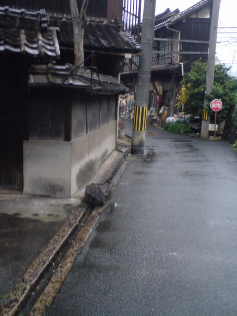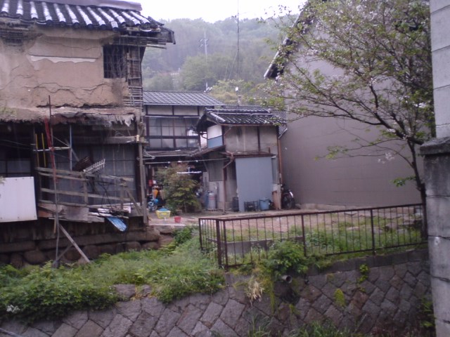 その家並みは山陽線の鉄道に引っ付くように三角型の家もある。