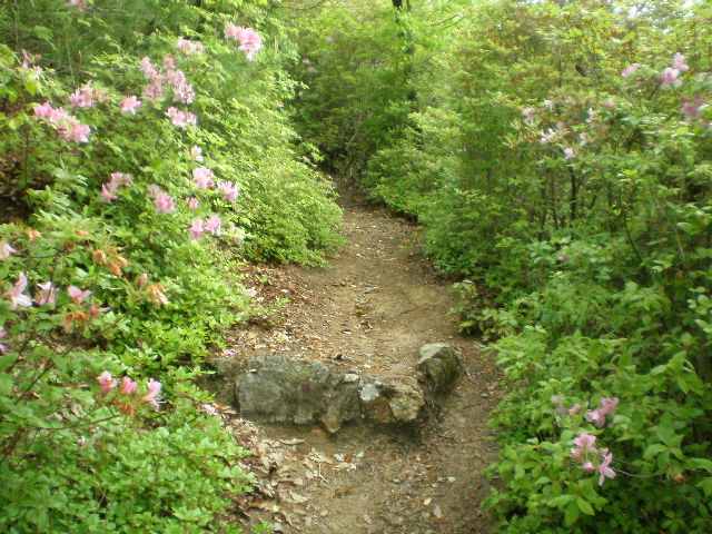 昨夜だろうか、降った雨で木々の緑はいっそう匂いだし、ツツジはまだ可憐な色であった。