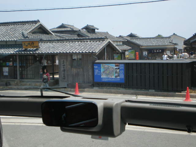 バスの窓からみる映画村。