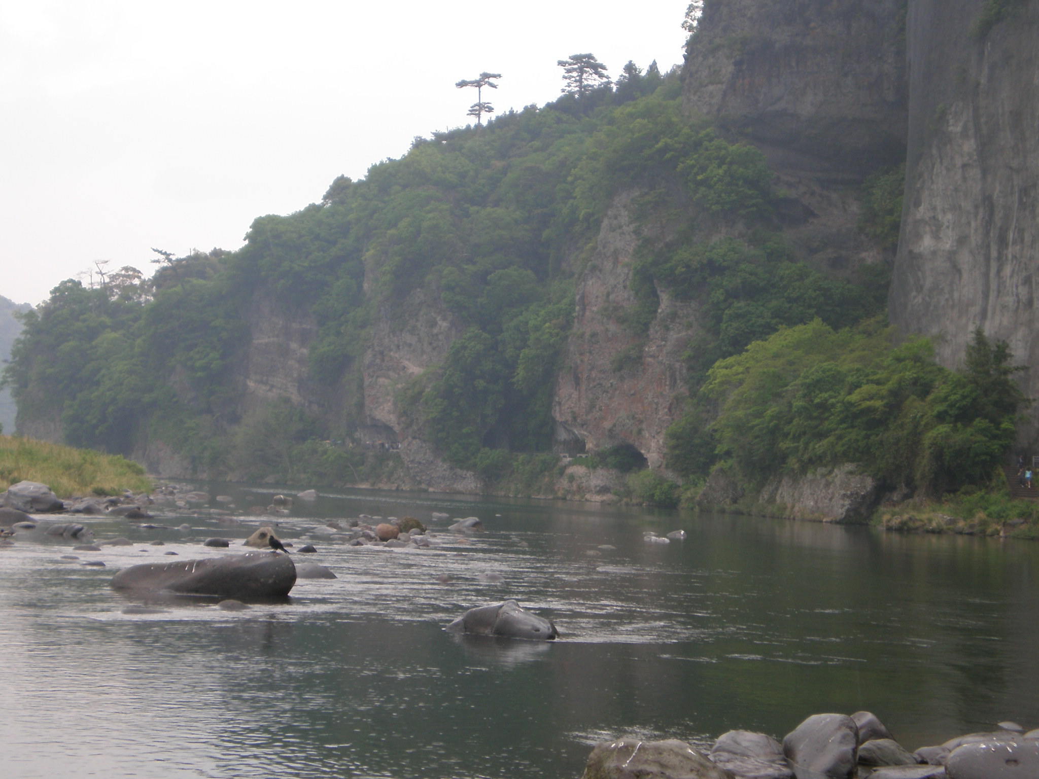山水画のように岩が切り立った耶馬渓。