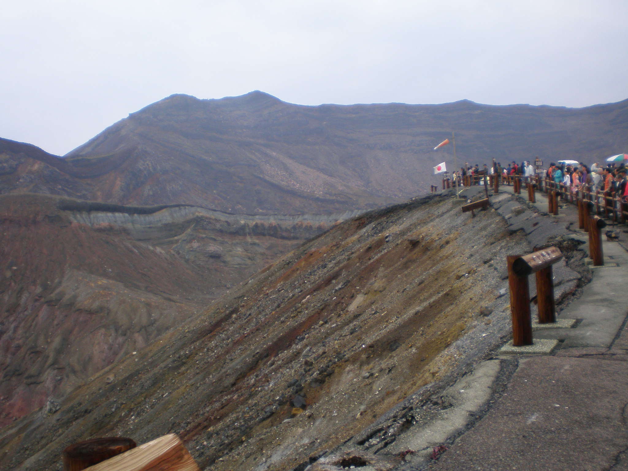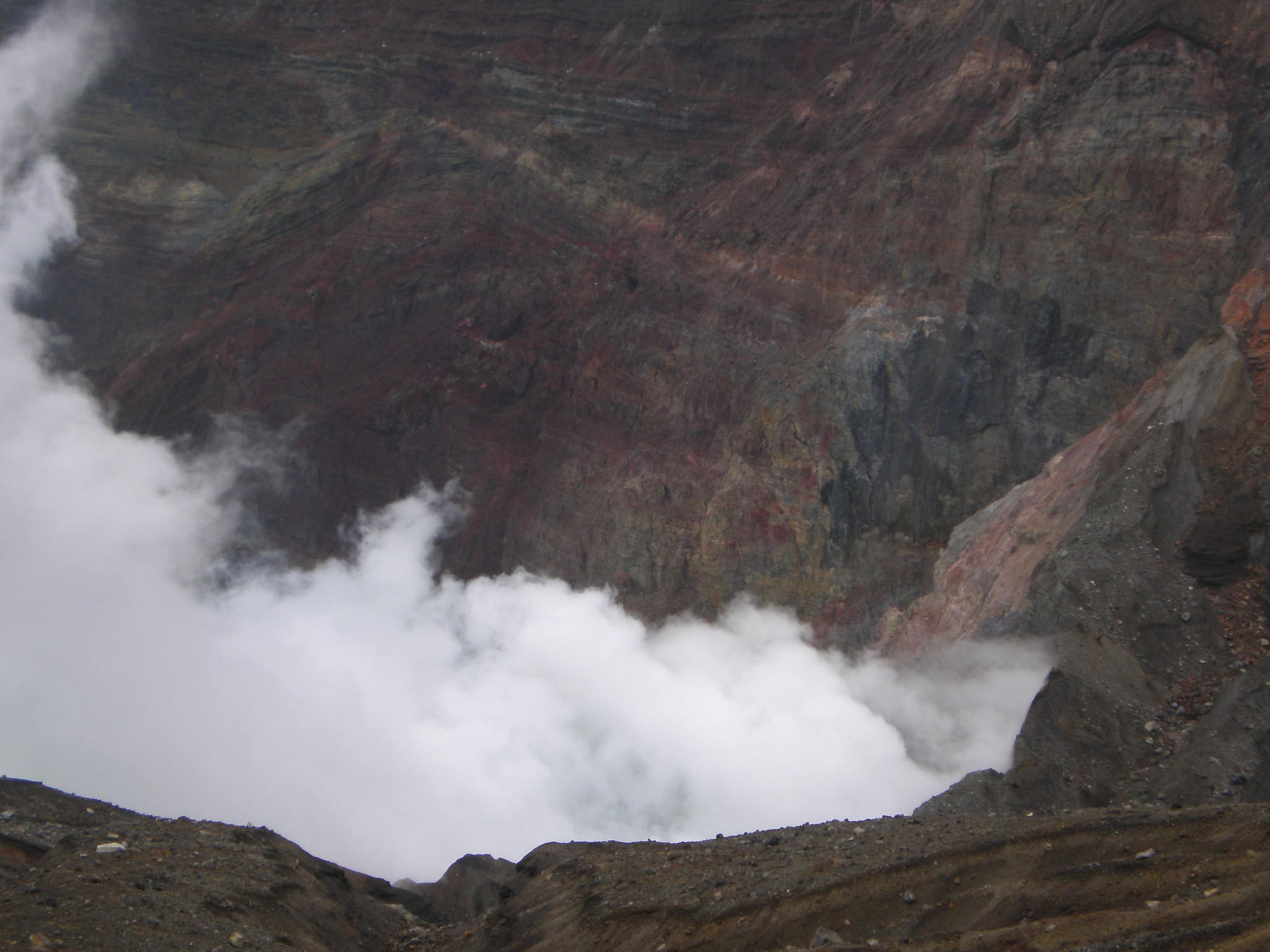 岩肌の色が何千年の噴火の歴史をなまなましく伝いてくれる。