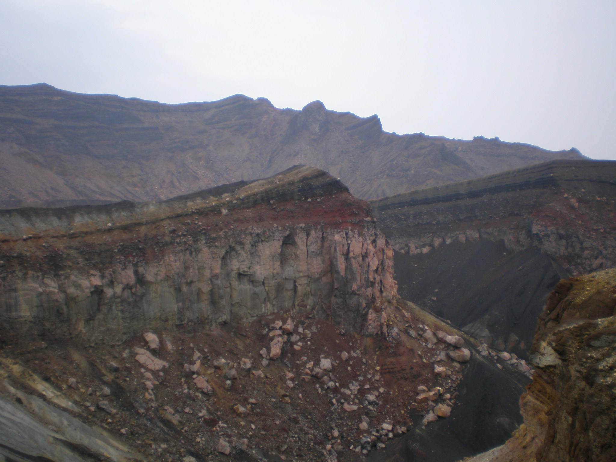 下を見れば火口、そして前方を見れば岩が突き出てグランドキャニオンに似た風景。すべてど迫力があった。