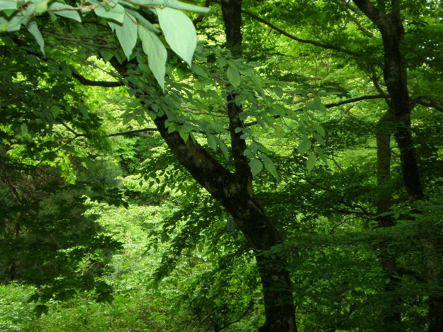 みどりそのものの滝への道を歩く。