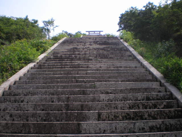 手すりもない、急な石段を上る。