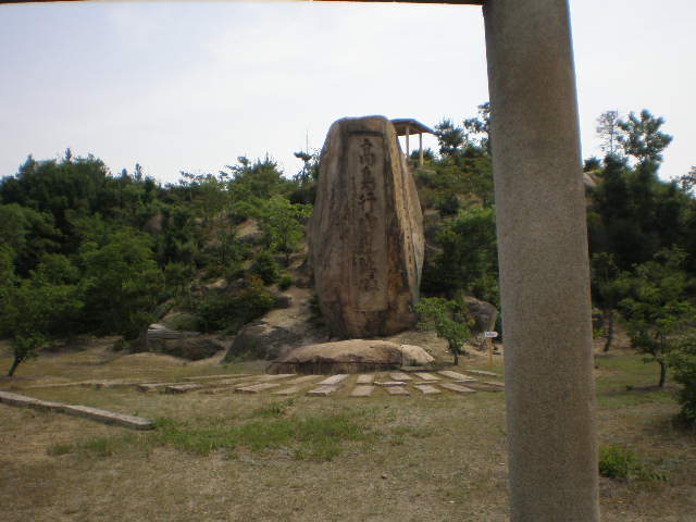 (ここに神武天皇の記念碑がある。なんと自然石。)