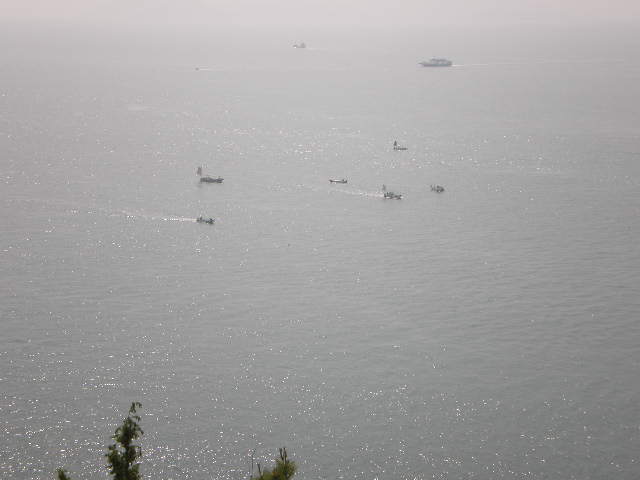 白石島との間は釣り船がいっぱい。