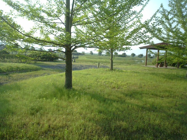朝露を踏みながら久しぶりのこの公園だったが、新緑はまだまだきれい。