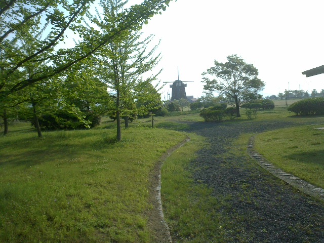 風車は既に故障中で羽根は動かず、おまけに風車小屋には立ち入り禁止となっていた。(わびしいかんじ)