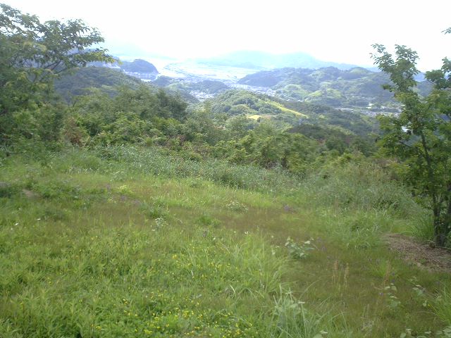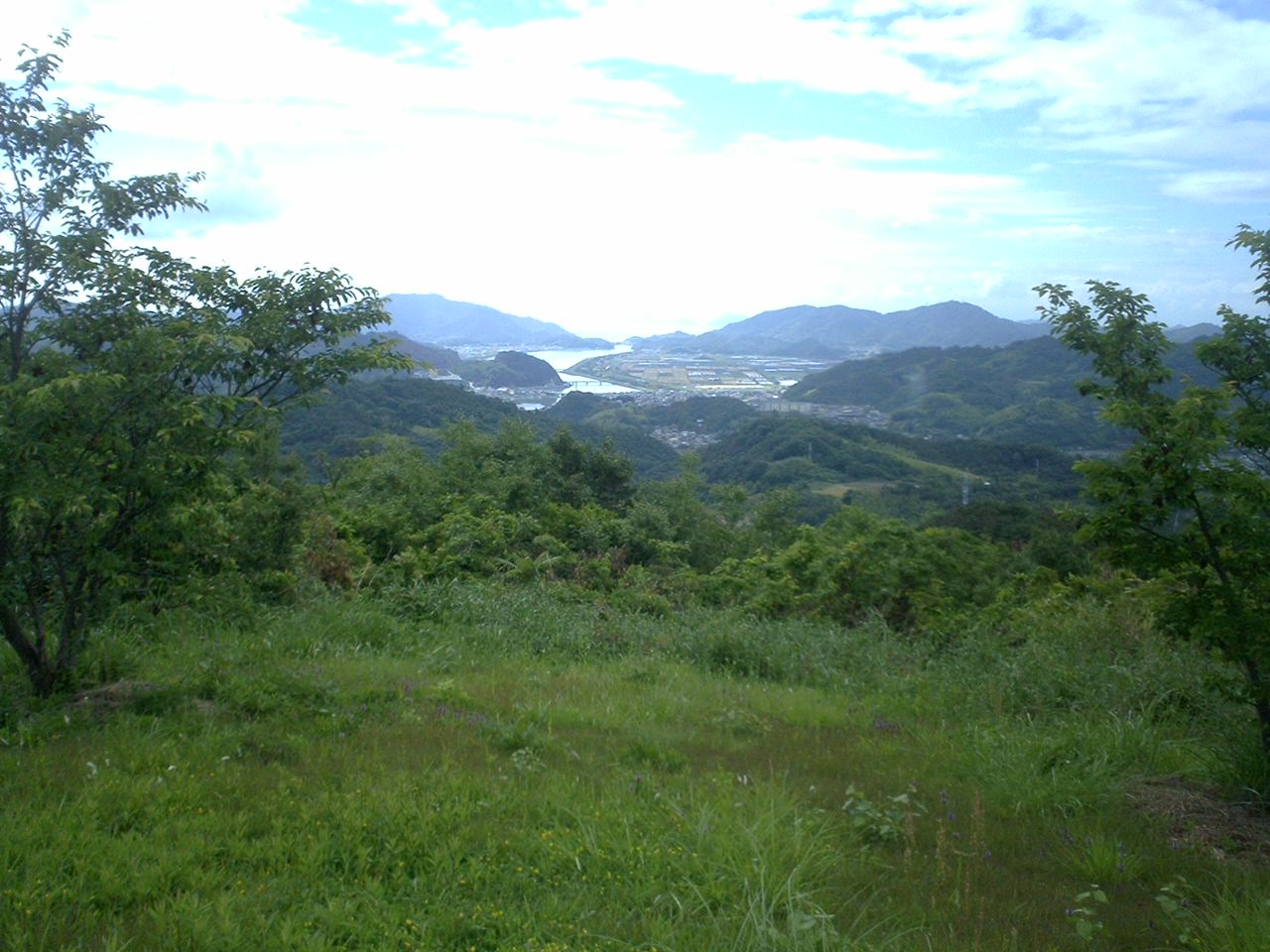眺めは予想通りすばらしく、 (しかし、写真では安物デジカメのため、かつズーム機能なしのため、見た景色の半分しか写っていましぇん。) 讃岐の佐柳島、備後の走島・仙酔島・田島。 それに神島の背後に北木島の山が見えるという、珍しい光景が楽しめる。 |