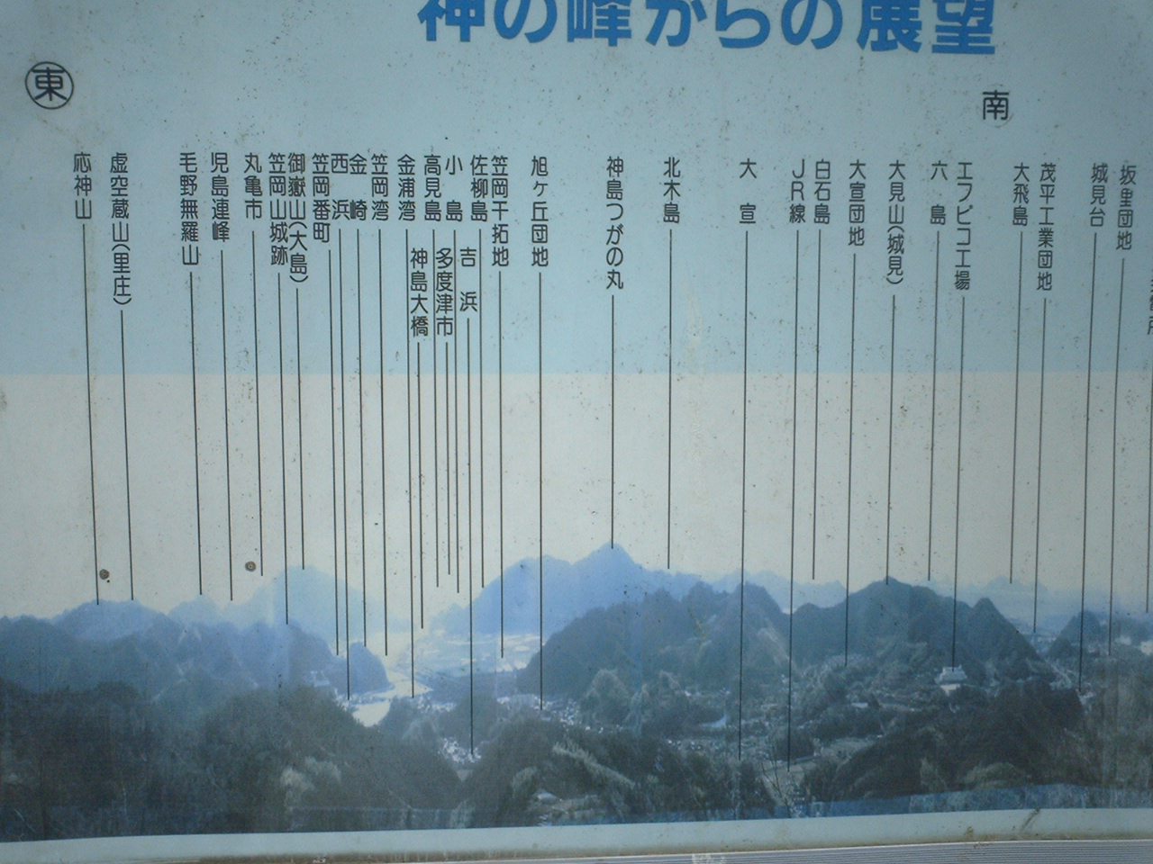 展望の標識を写すと、↓。瀬戸内海は全て見えるのではないか、と言わんばかり。 |