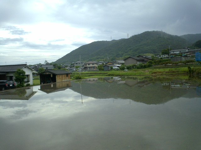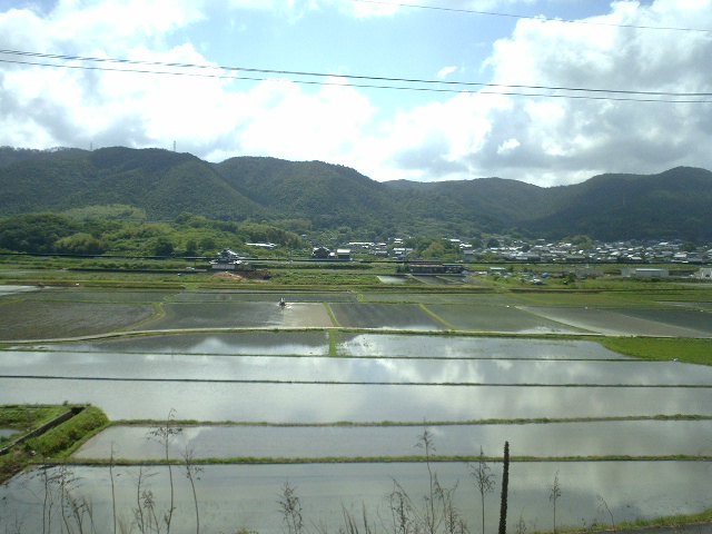 同じく、古代の丘スポーツ公園の坂道から見る山口の東方向。