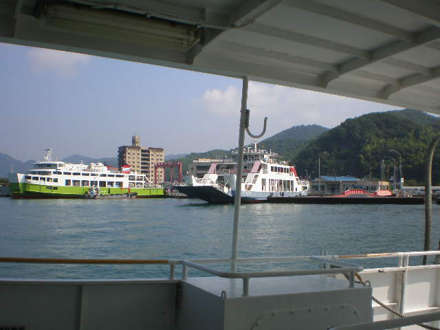 竹原港を出た高速船から見る竹原港。何艘もフェリーが接岸している。