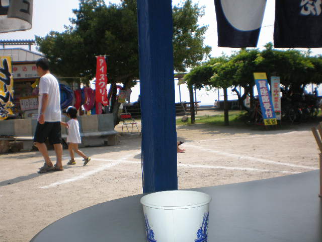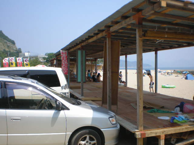 やむなく海水浴場のシャワーででも汗を流そう、と作戦変更。