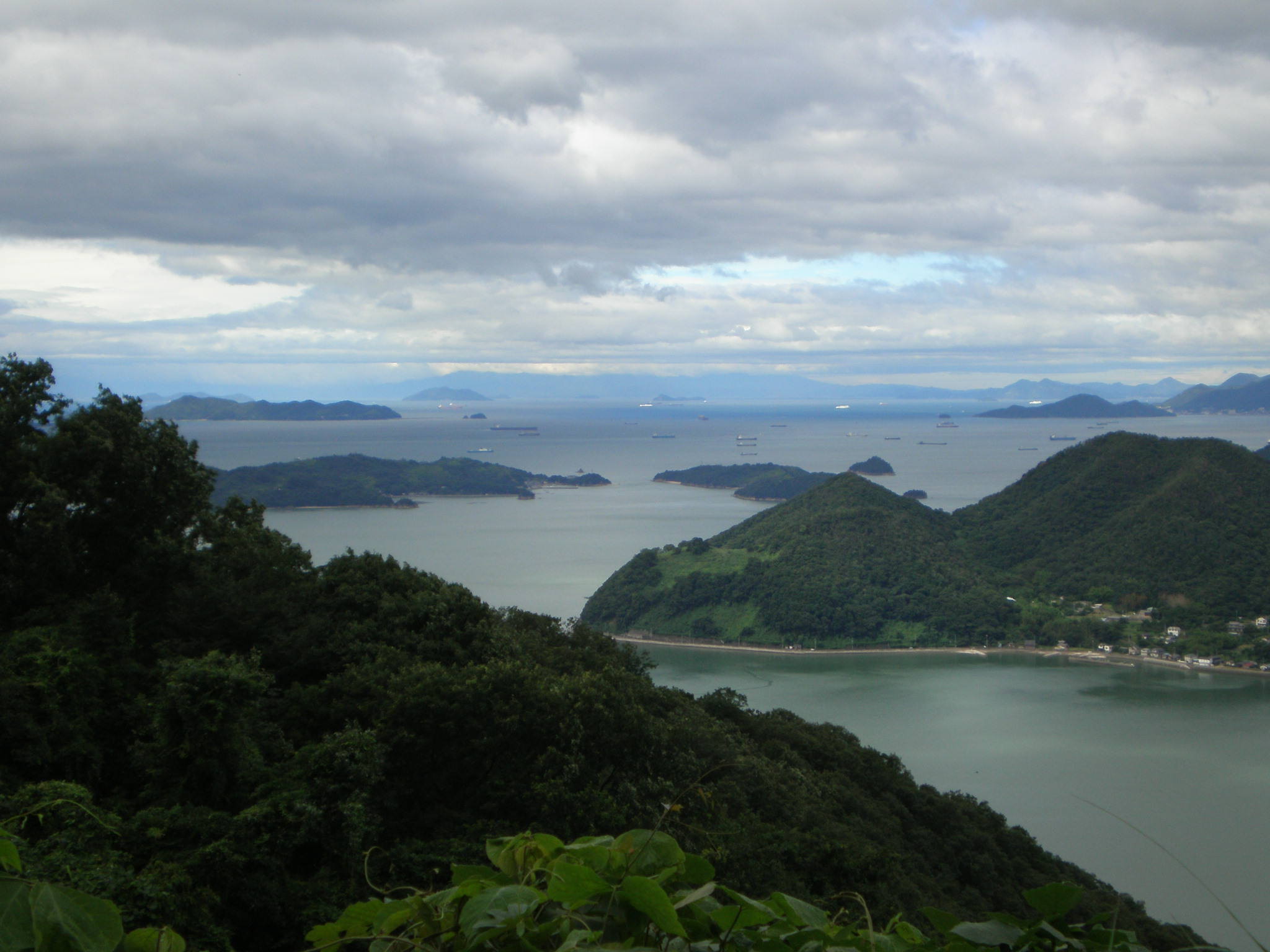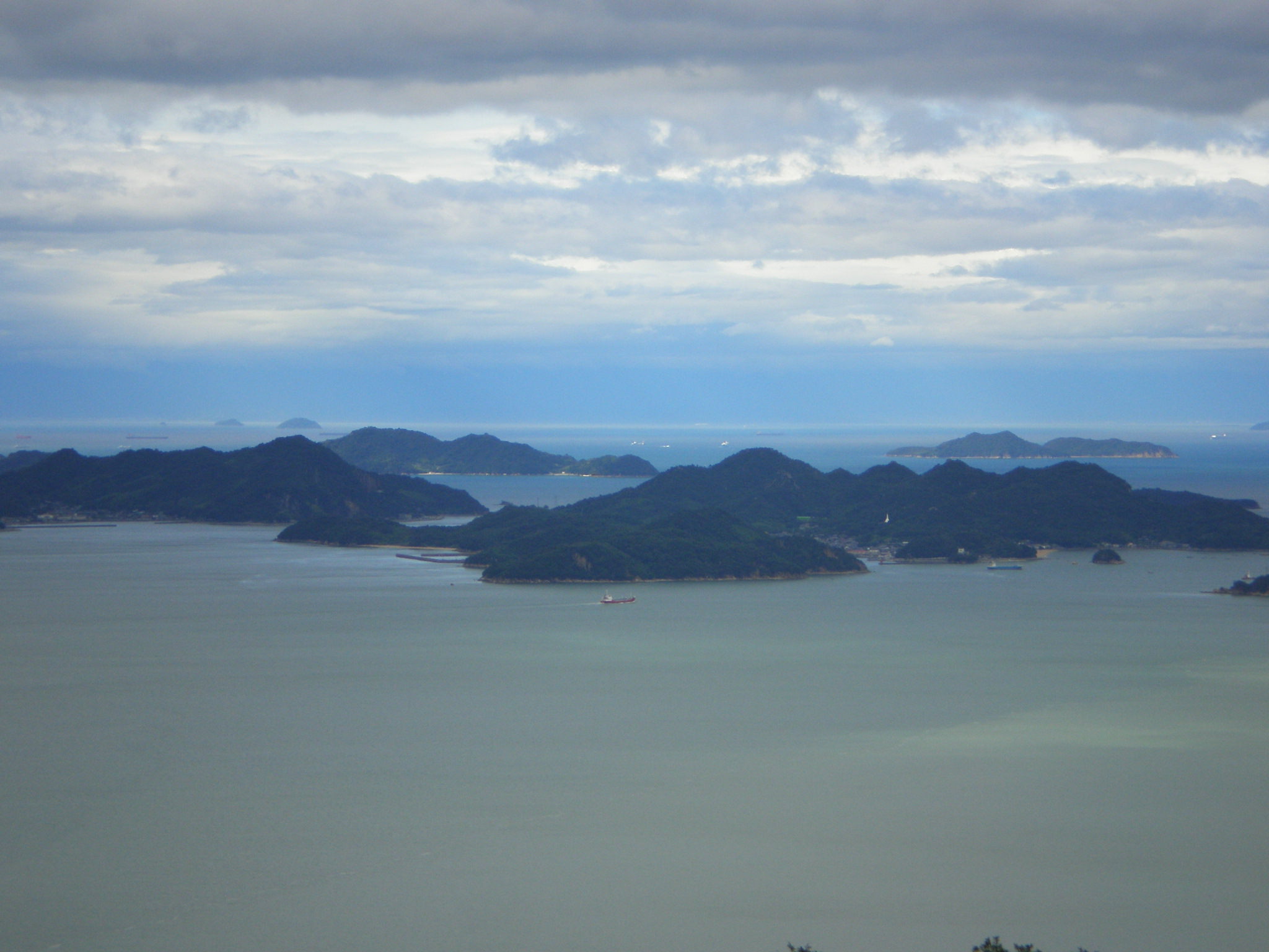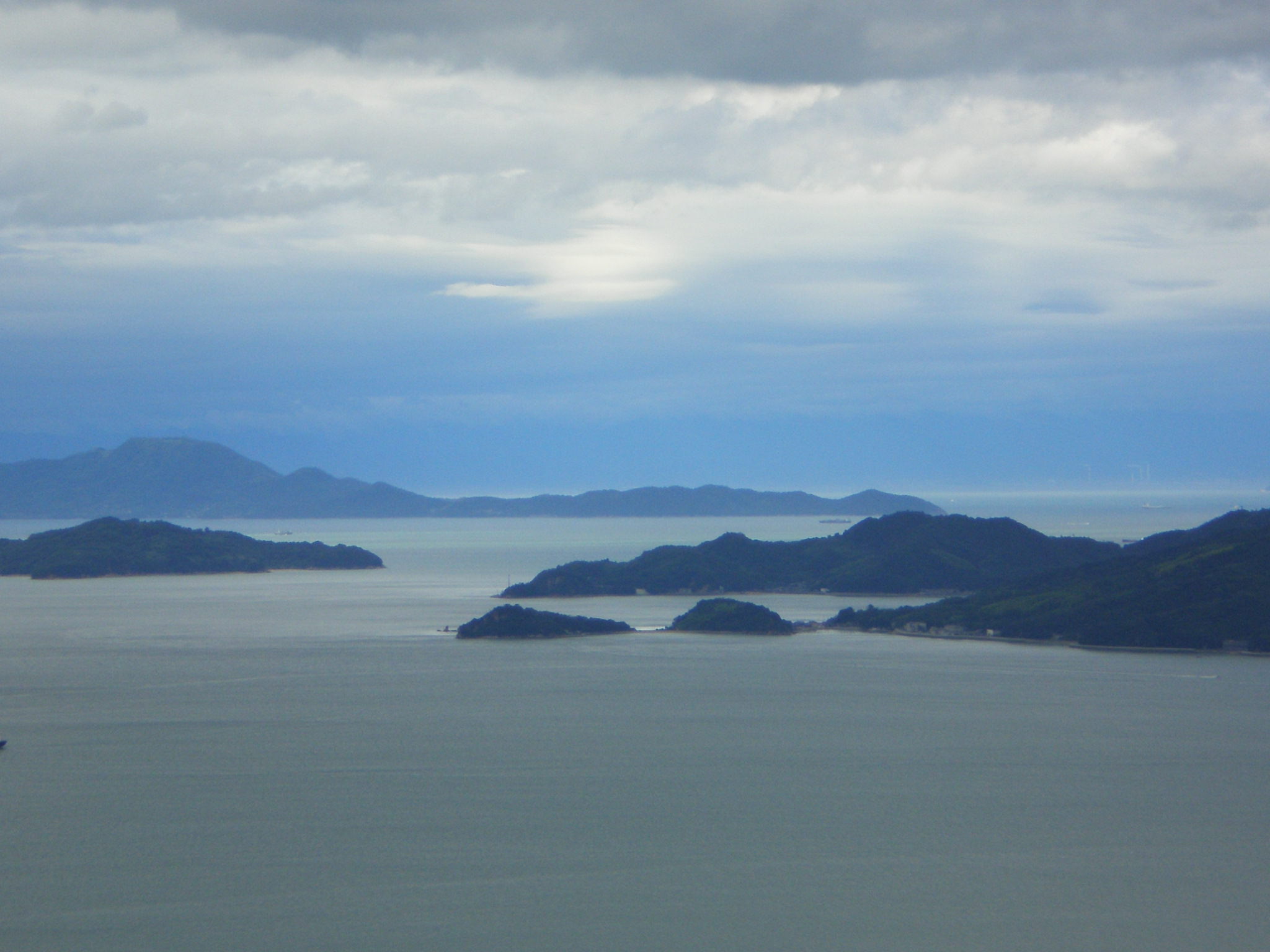 だんだんと高くなり、燧灘の向こうには四国山地。